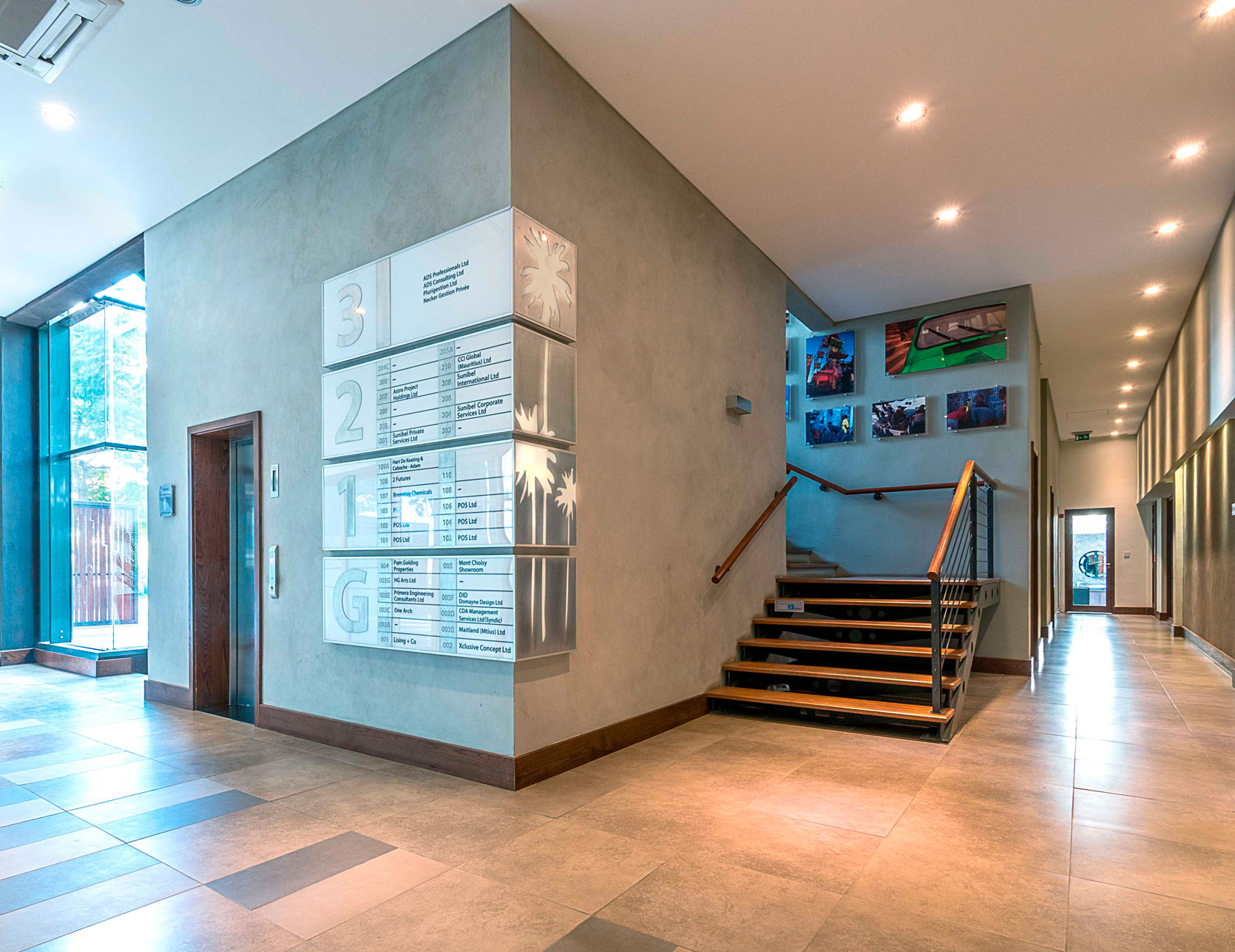 Grand Baie Business Quarter retains a very strong welcoming feeling for visitors, clients and office workers, with wide-open spaces inside the building and in the corridor areas.