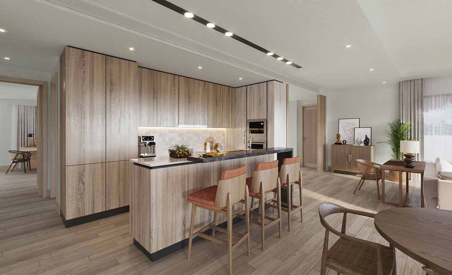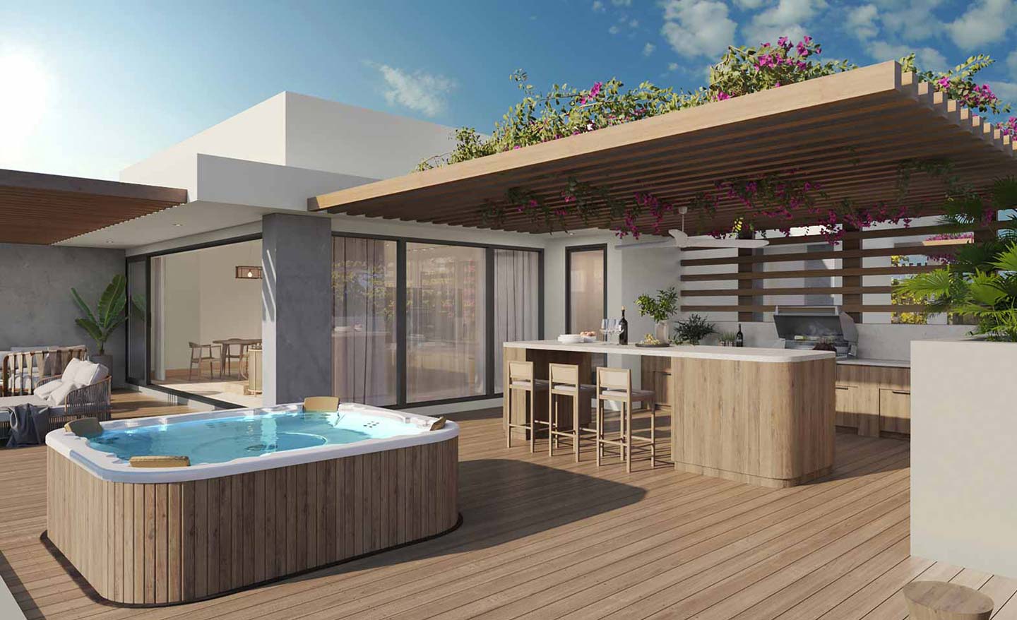 At Infinity, the penthouses face the infinite blue of the ocean and the towering historical site of Le Morne Brabant, all tastefully designed to achieve the art of living in comfort. All penthouses feature 3 spacious en suite bedrooms, a large living room, and a spacious terrace. They might include a hammam, Jacuzzi, and outdoor kitchen upon request. There are only 9 penthouses at Infinity by the Sea, each with a minimum of 200 sqm flooring space.
